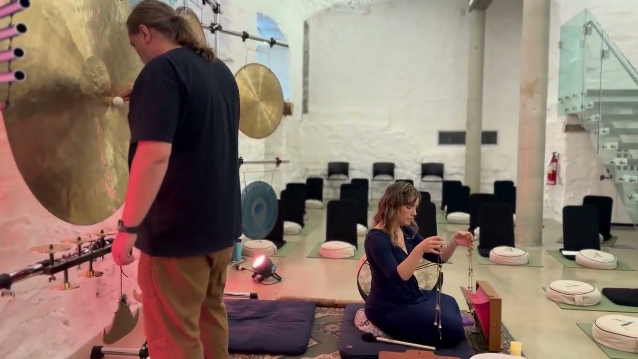 Médita-son, un projet créé par Frédérick Noiseux et Viviane Desbiens, vous propose un concert méditatif durant lequel les multiples sonorités à la fois puissantes et subtiles des gongs vous surprendront dans les voûtes du Monastère datant de 1695. Les ondes sonores émises par ces instruments impressionnants induisent d’abord un rythme cérébral alpha: un état de créativité et de relaxation. Puis, les sons progressent pour conduire le cerveau vers les ondes thêta, associées à la méditation profonde.
