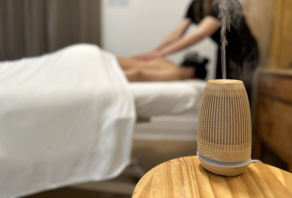 Bénéficiez d’un massage classique que vous pourrez bonifier par une sélection d’huiles essentielles. Laissez-vous porter par votre intuition et par votre état du moment dans le choix des huiles. Celles-ci pourront être diffusées dans l’air ou utilisées directement sur votre corps. Une véritable expérience d’aromathérapie qui favorise l’équilibre entre le corps et l’esprit!